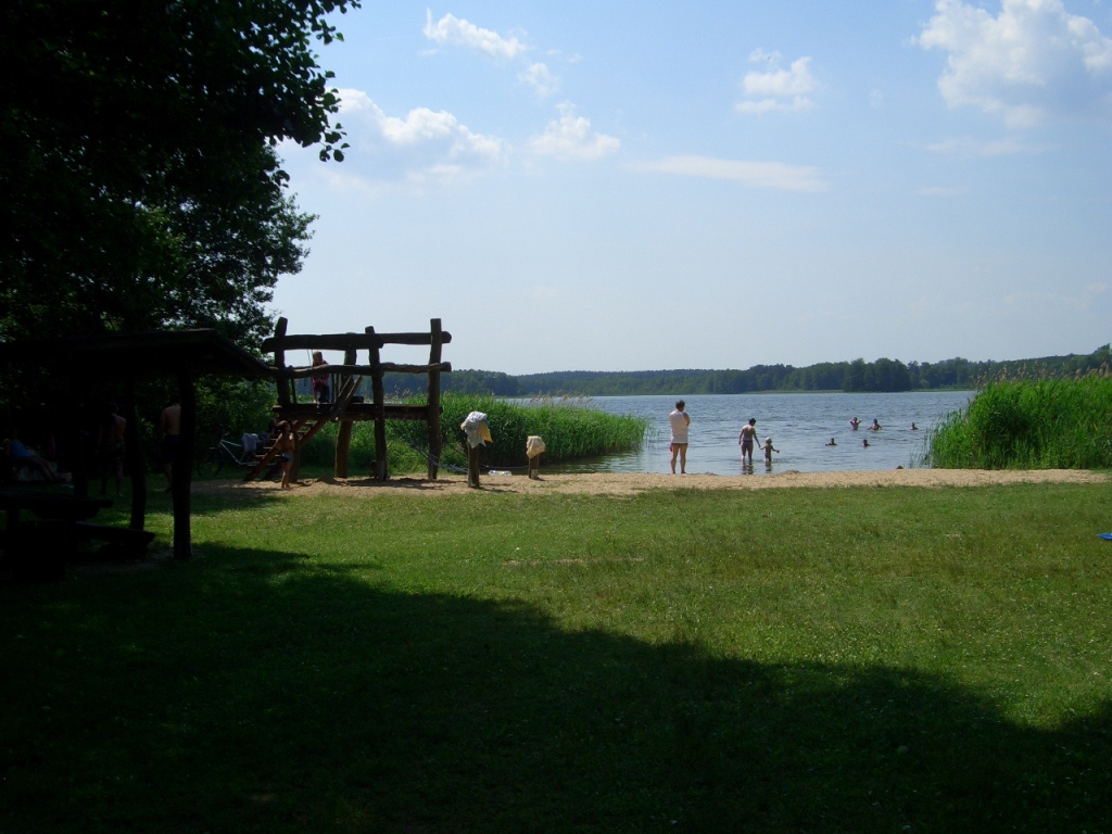 und der Badestrand am Moderfitzsee, ebenfalls mit Volleyball- und Kinderspielplatz