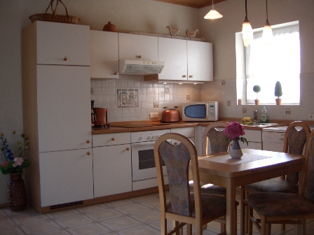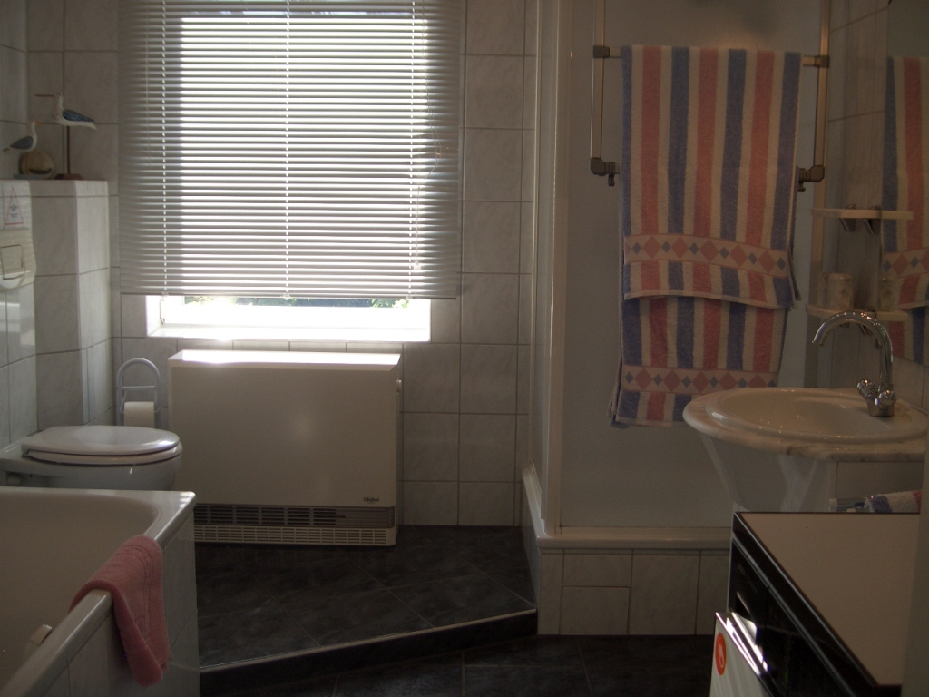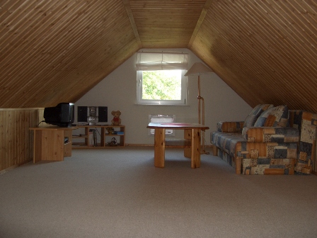 Das Haus ist ausgestattet mit Dusche, Badewanne, Geschirrspüler und Herd mit Backofen. Ein Doppelbett befindet sich im Dachgeschoss und eines im Schlafzimmer unten.